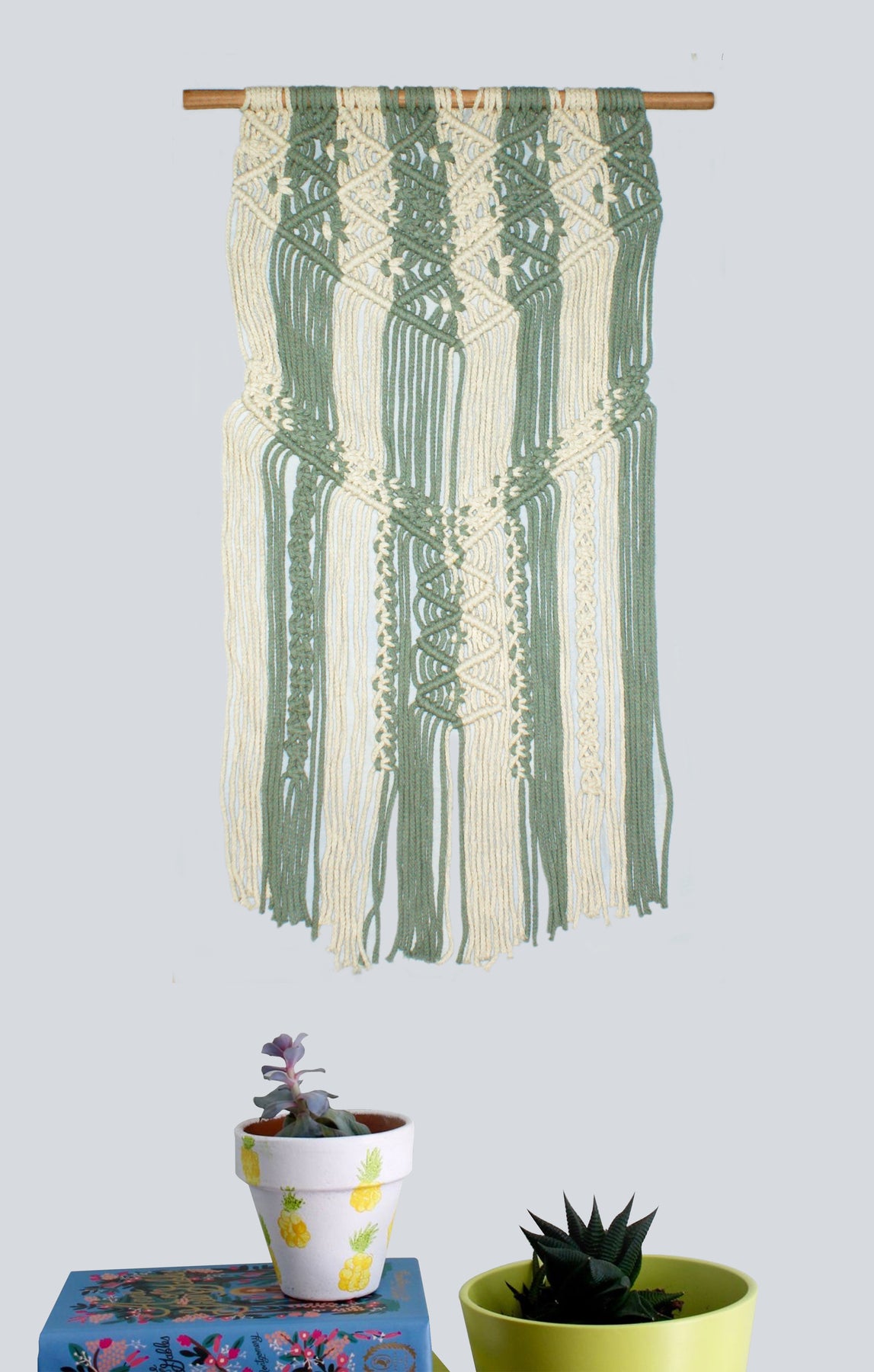 LIVINPARADISE | Macrame Wall Hanging | Woven Boho Chic Wall Décor | Beautiful Art | Handmade Woven Tapestry | Natural Colour & Teal Green | 18x32 Inch