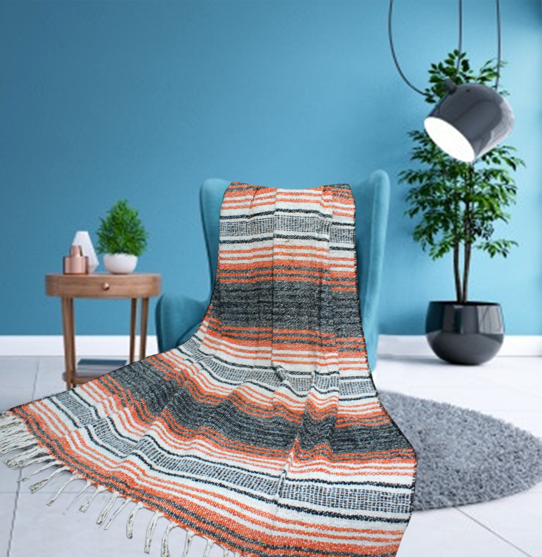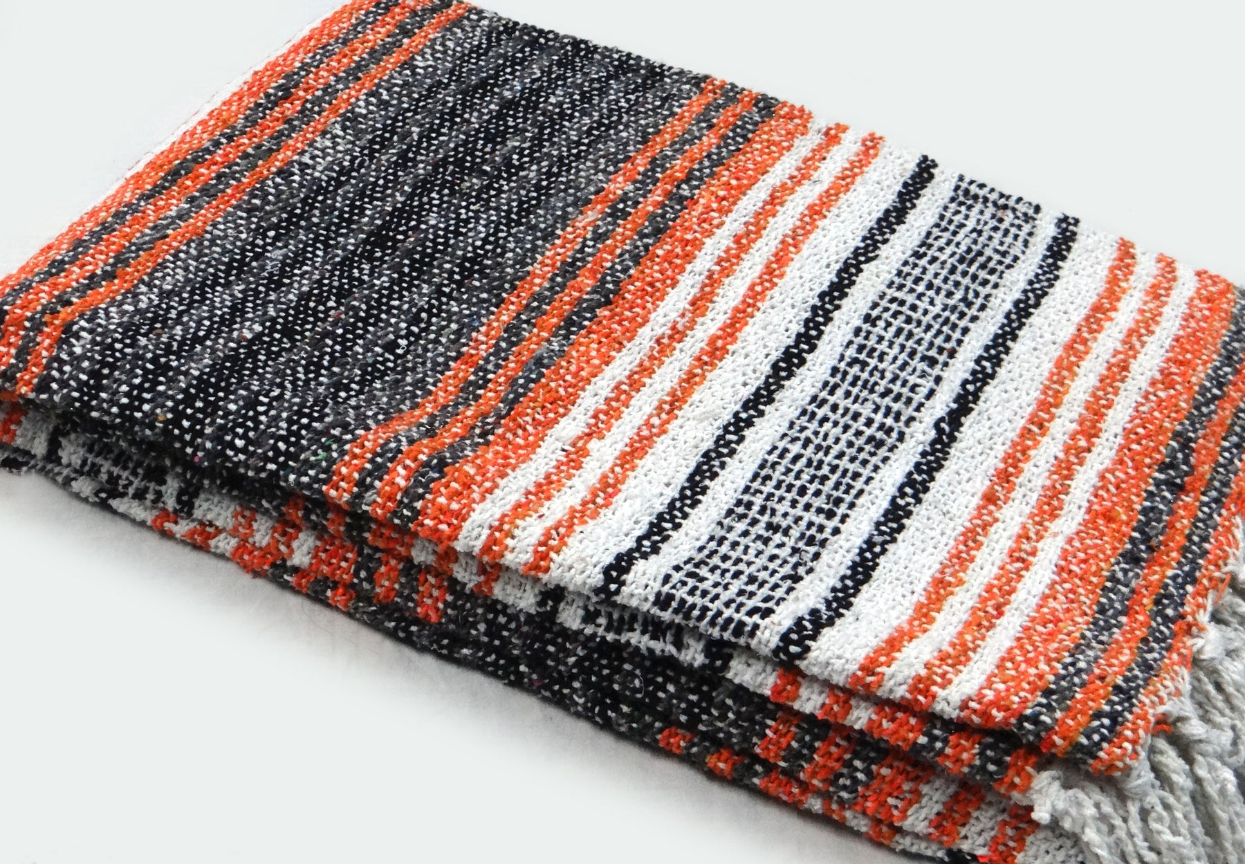 LIVINPARADISE | Authentic Falsa Blanket | Recycled Throw and Blanket | Picnic or Camping | Home Decor & Everyday Use | Indoor and outdoor | Size 50" x 80" APPROX| Orange