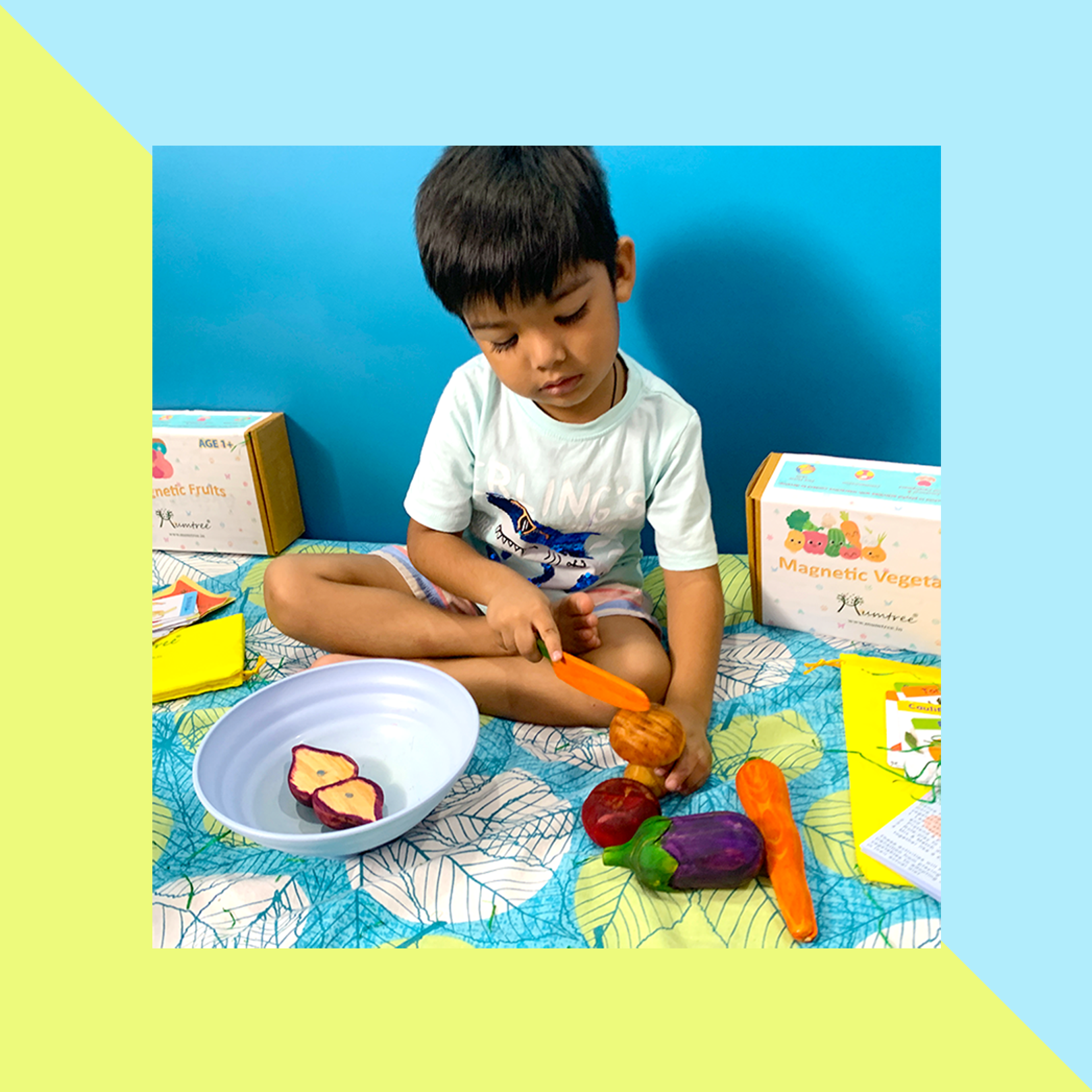 As a parent, you should allow your child to experiment with cutting on their own, thus enhancing their motor skills, and increasing their ability to identify and change perspectives on the food they eat. Hence Mumtree brings you Magnetic vegetables so that your kid can have great fun & play with the colorful wooden vegetables.